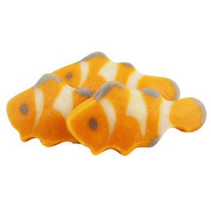 ผลิตจากเนื้อปลาปรุงรส ขึ้นรูปเป็นรูปปลาการ์ตูน