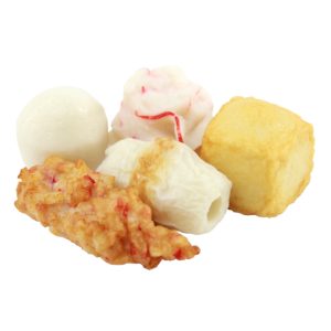ลูกชิ้นที่ผลิตจากเนื้อปลาบดปรุงรส บรรจุความหลากหลายไว้ในซองเดียวกัน : ลูกชิ้นปลา, เต้าหู้ปลา, ปูอัดทอด, ลูกชิ้นกุ้งมังกร และปลาหลอด